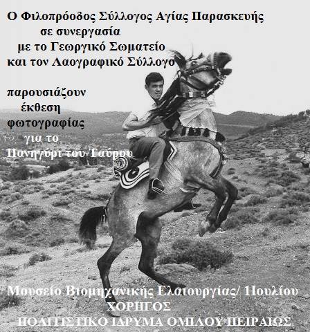 - Κατά τον μήνα Ιούλιο ο Φιλοπρόοδος Σύλλογος σε συνεργασία με τον Λαογραφικό Σύλλογο και το Γεωργικό Σωματείο «Η Πρόοδος» παρουσιάζουν στο Μουσείο Βιομηχανικής Ελαιουργίας Λέσβου στην Αγία Παρασκευή έκθεση φωτογραφίας με θέμα «Το πανηγύρι του Ταύρου» στην Αγία Παρασκευή