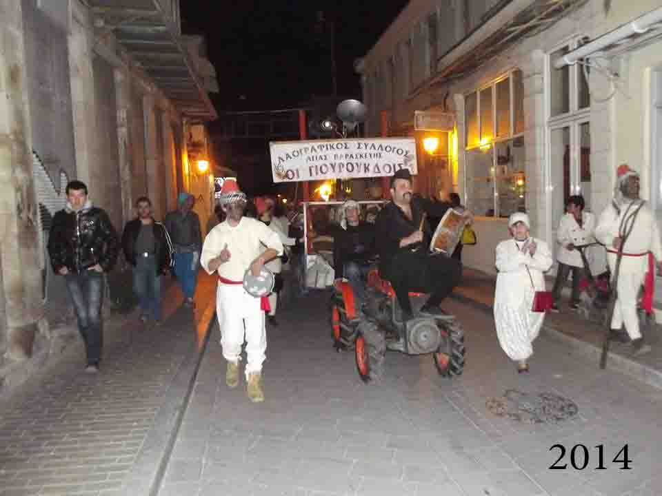 - Πραγματοποιείται το καρναβάλι με 4 άρματα που φέρουν τους τίτλους «Μαντείο Αγίας Παρασκευής», «Θεός Διόνυσος», «Γιουρούκδες» και «Χορός με Βράκες»