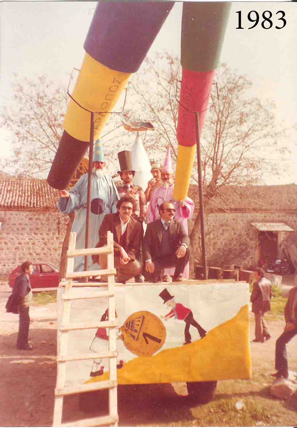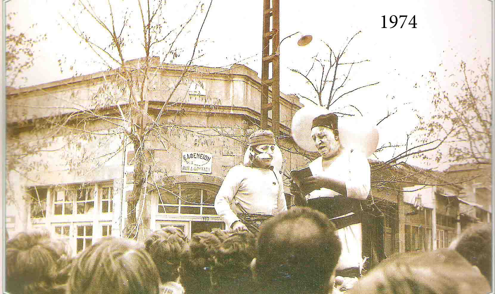- Πραγματοποιείται το καρναβάλι με 3 άρματα που φέρουν τους τίτλους «Αερομεταφερόμενο Ειδησιογραφικό Πρακτορείο», «Τιμάριθμος» και «Ταλαίπωρος Αγρότης». Από εκείνη τη χρονιά ξεκίνησε η ηχογράφηση των καρναβαλικών σκετς σε κασέτες ήχου