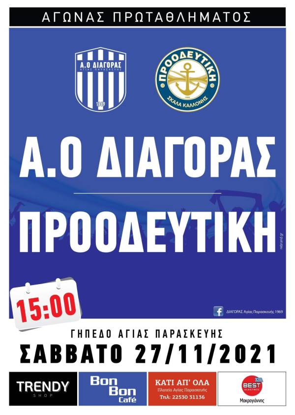ΔΙΑΓΟΡΑΣ-Προοδευτική (Πρωτάθλημα Α’ Κατηγορίας Λέσβου, 27/11, 15:00)