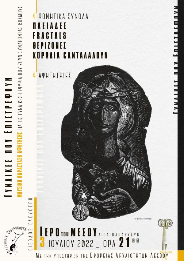 Η Εφορεία Αρχαιοτήτων Λέσβου σας προσκαλεί την Κυριακή 3 Ιουλίου 2022 και ώρα 21:00 στον Αρχαιολογικό Χώρο του Ιερού του Μέσου της περιφέρειας Αγίας Παρασκευής, στη μουσική παράσταση αφήγησης "Γυναίκες που επιστρέφουν.... Για τις γυναίκες-γεφύρια που ζουν συνδέοντας κόσμους", η οποία πραγματοποιείται με τη συνεργασία των ακόλουθων τεσσάρων φωνητικών συνόλων: Πλειάδες, Fractals, Θερίζονες και χορωδία... Continue Reading →