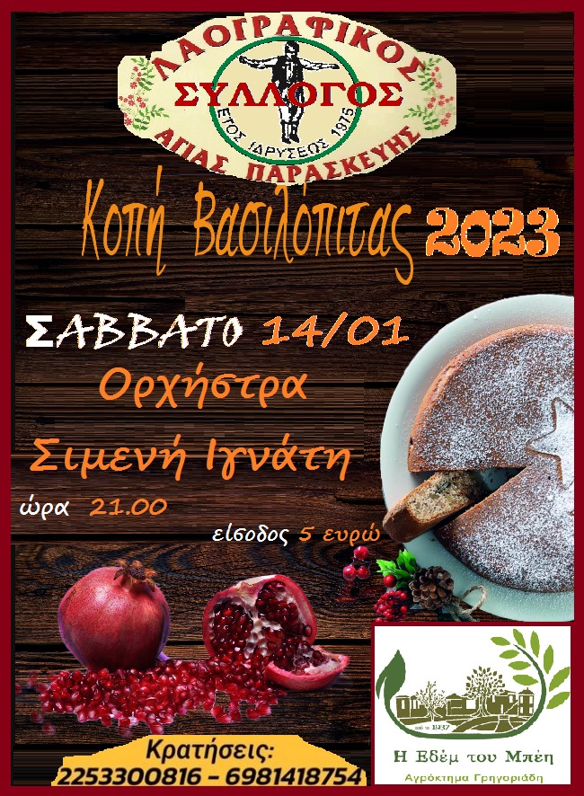 Κοπή βασιλόπιτας Λαογραφικού Συλλόγου Κοπή βασιλόπιτας Λαογραφικού Συλλόγου Κοινοποιήστε:Tweet Πατήστε για να μοιραστείτε στο WhatsApp(Ανοίγει σε νέο παράθυρο) WhatsApp Κλικ για αποστολή ενός συνδέσμου μέσω email σε έναν/μία φίλο/η(Ανοίγει σε νέο παράθυρο) Email Κλικ για εκτύπωση(Ανοίγει σε νέο παράθυρο) Εκτύπωση Μου αρέσει! Φόρτωση... Σχετικά Τα σχόλια είναι απενεργοποιημένα.