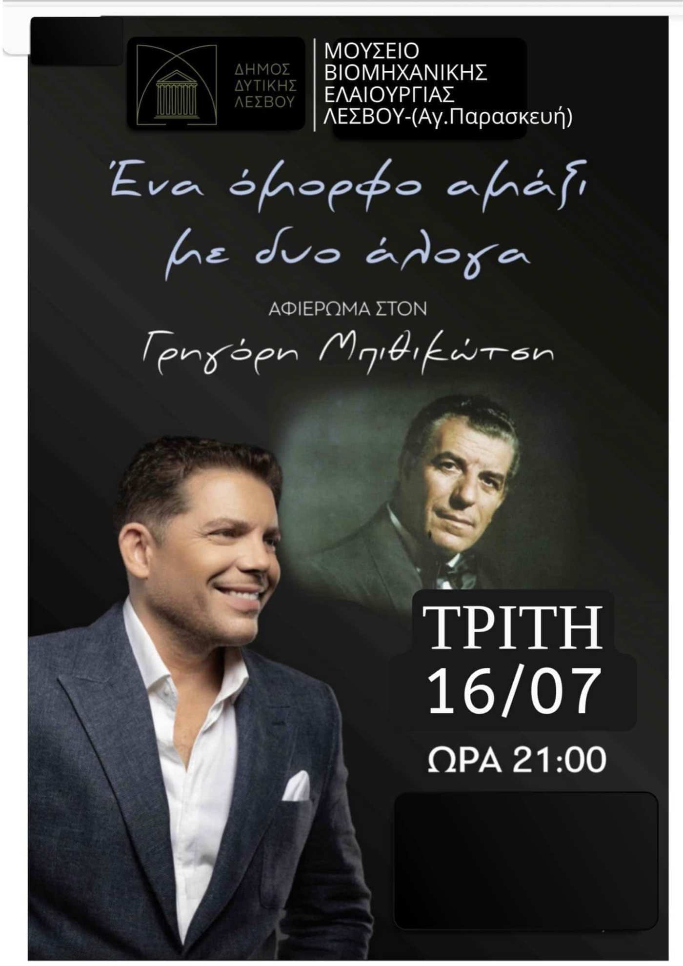 Αφιέρωμα στον Γρηγόρη Μπιθικώτση Απόψε στις 9μμ στο Μουσείο Βιομηχανικής Ελαιουργίας Λέσβου στην Αγία Παρασκευή Κοινοποιήστε:Tweet Πατήστε για να μοιραστείτε στο WhatsApp(Ανοίγει σε νέο παράθυρο) WhatsApp Κλικ για αποστολή ενός συνδέσμου μέσω email σε έναν/μία φίλο/η(Ανοίγει σε νέο παράθυρο) Email Κλικ για εκτύπωση(Ανοίγει σε νέο παράθυρο) Εκτύπωση Μου αρέσει! Φόρτωση... Σχετικά Τα σχόλια είναι απενεργοποιημένα.