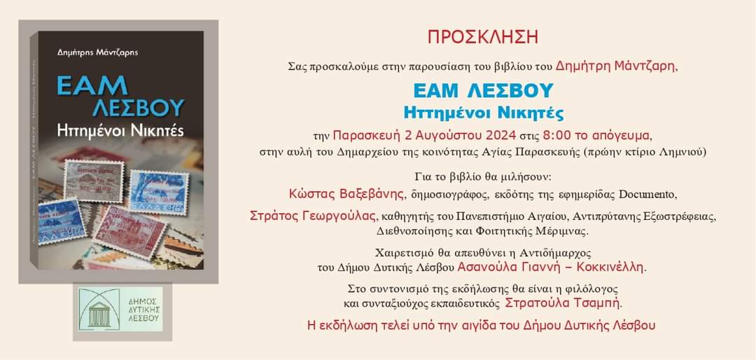 Παρουσίαση βιβλίου Δημήτρη Μάντζαρη Παρουσίαση βιβλίου Δημήτρη Μάντζαρη Κοινοποιήστε:Tweet Πατήστε για να μοιραστείτε στο WhatsApp(Ανοίγει σε νέο παράθυρο) WhatsApp Κλικ για αποστολή ενός συνδέσμου μέσω email σε έναν/μία φίλο/η(Ανοίγει σε νέο παράθυρο) Email Κλικ για εκτύπωση(Ανοίγει σε νέο παράθυρο) Εκτύπωση Μου αρέσει! Φόρτωση... Σχετικά Τα σχόλια είναι απενεργοποιημένα.