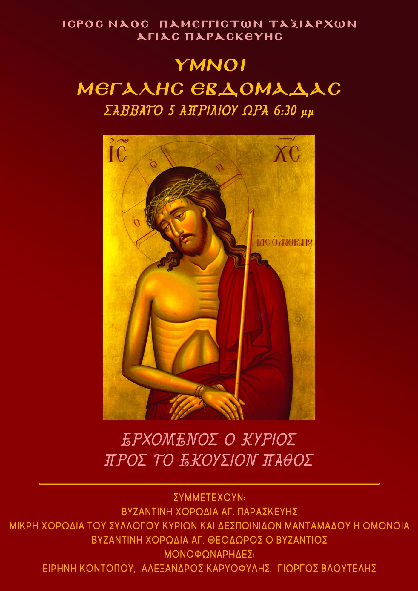 Ύμνοι Μεγάλης Εβδομάδας (Σάββατο 5 Απριλίου 2025, 6:30μμ)