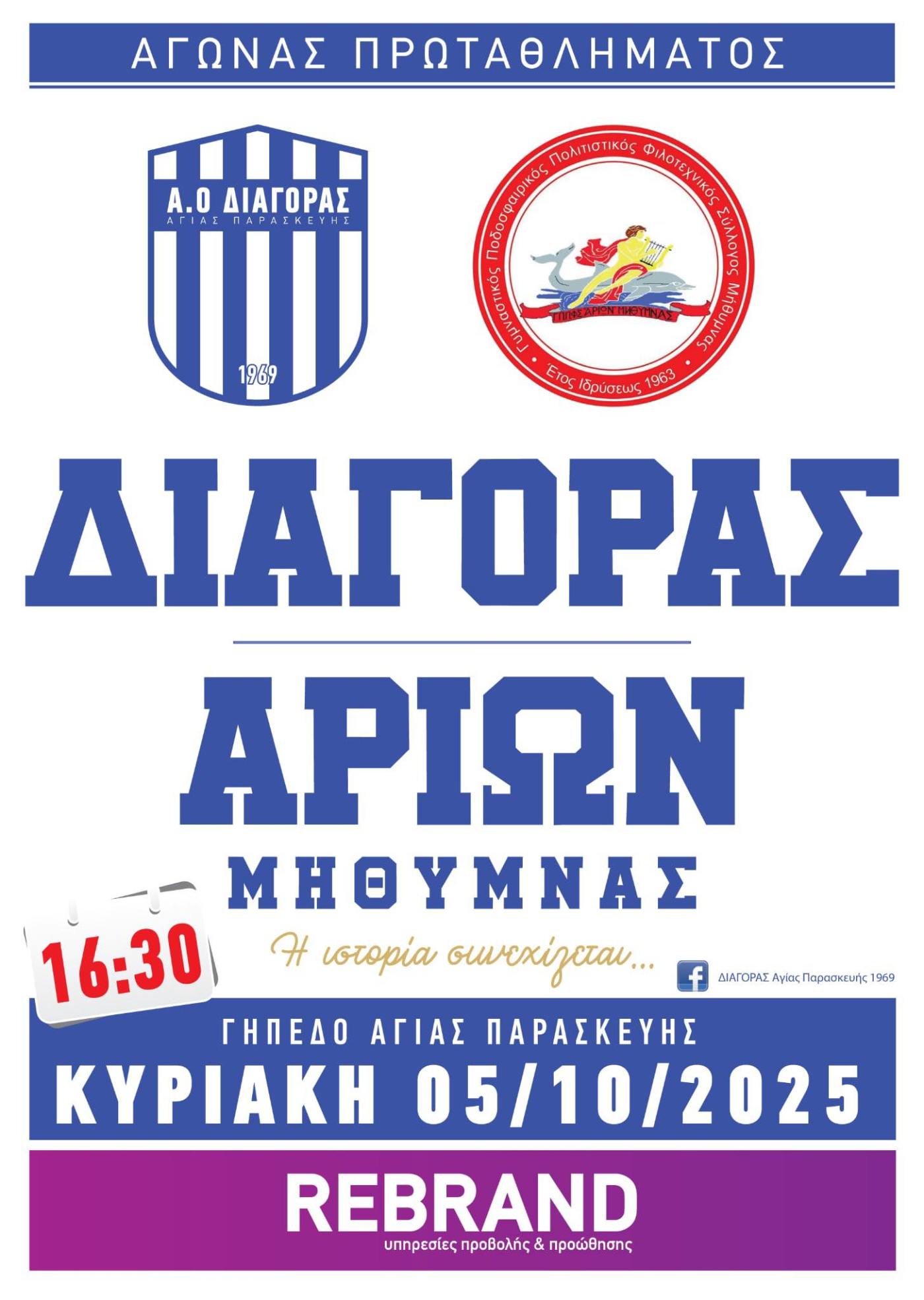ΔΙΑΓΟΡΑΣ- Αρίων Μήθυμνας (Κυριακή 5/10/25, 16:30) ΔΙΑΓΟΡΑΣ- Αρίων Μήθυμνας (Κυριακή 5/10/25, 16:30) Κοινοποιήστε:Tweet Πατήστε για να μοιραστείτε στο WhatsApp(Ανοίγει σε νέο παράθυρο) WhatsApp Κλικ για αποστολή ενός συνδέσμου μέσω email σε έναν/μία φίλο/η(Ανοίγει σε νέο παράθυρο) Email Κλικ για εκτύπωση(Ανοίγει σε νέο παράθυρο) Εκτύπωση Μου αρέσει! Φόρτωση... Σχετικά Τα σχόλια είναι απενεργοποιημένα.