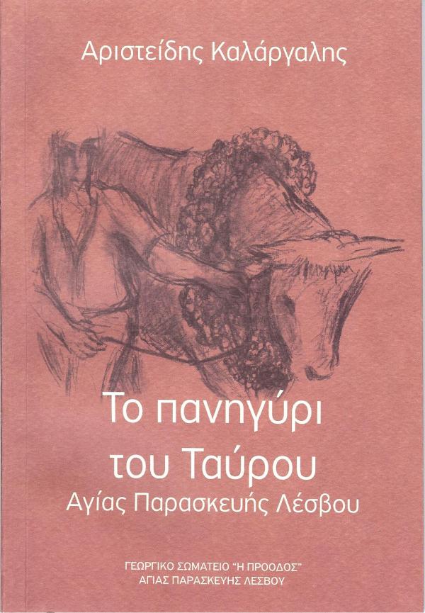 Τίτλος: Το πανηγύρι του Ταύρου Αγίας Παρασκευής Λέσβου Συγγραφέας: Αριστείδης Καλάργαλης Έκδοση: Γεωργικό Σωματείο Αγίας Παρασκευής Λέσβου "Η ΠΡΟΟΔΟΣ" Έτος έκδοσης: 2015 Σελίδες: 62 (περιέχει 26 εικόνες) ISBN: 978-618-82054-0-6 Ο συγγραφέας, ερευνώντας τις εφημερίδες και τα περιοδικά της Λέσβου των αρχών του προηγούμενου αιώνα, εντοπίζει και παρουσιάζει στην έκδοσή του τέσσερα δημοσιεύματα με θέμα το... Continue Reading →
