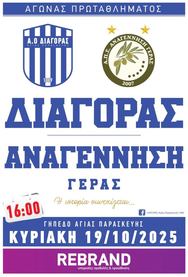 ΔΙΑΓΟΡΑΣ-Αναγέννηση Γέρας (Κυριακή 19/10/25, 16:00)