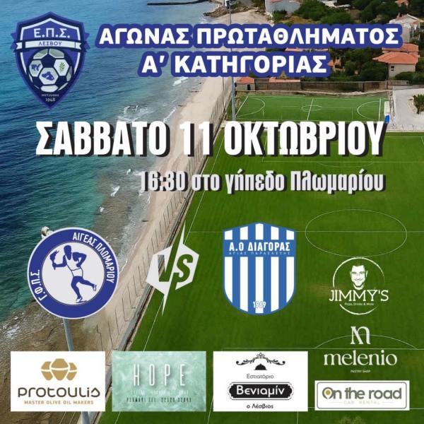 Αιγέας Πλωμαρίου-ΔΙΑΓΟΡΑΣ (Σάββατο 11/10/25, 16:30)
