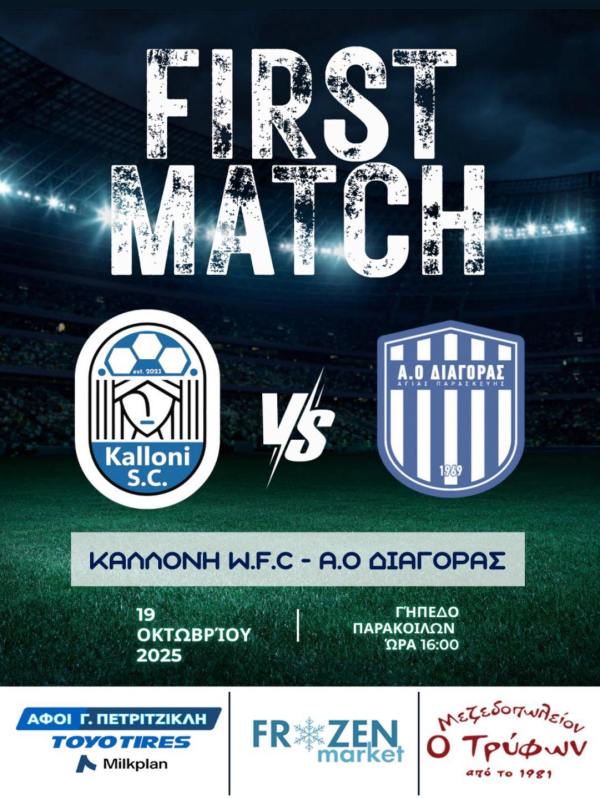 Καλλονή WFC-ΔΙΑΓΟΡΑΣ WFC (Κυριακή 19/10/25, 16:00)